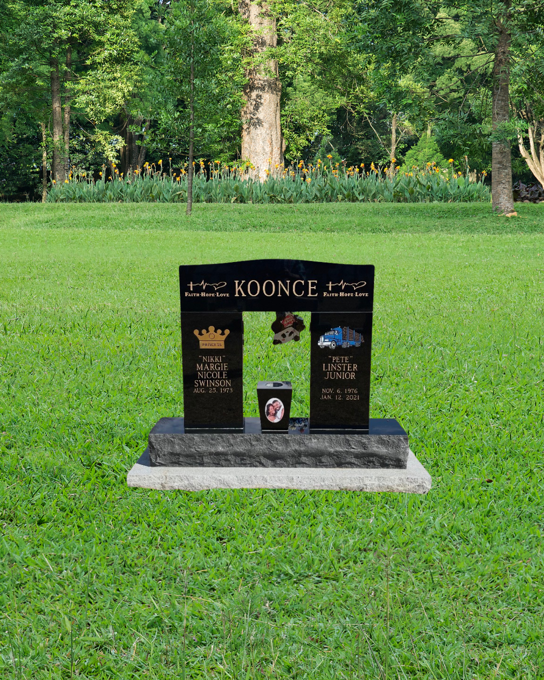 Specialties headstones are custom-designed memorials created to reflect the unique life, personality, and legacy of a loved one. These memorials may include distinctive shapes, custom artwork, detailed etchings, photo cameos, personalized symbols, or themed designs. Crafted with precision and care, specialties headstones allow families to honor memories in a meaningful and individualized way, creating a lasting tribute that tells a personal story with dignity and respect.